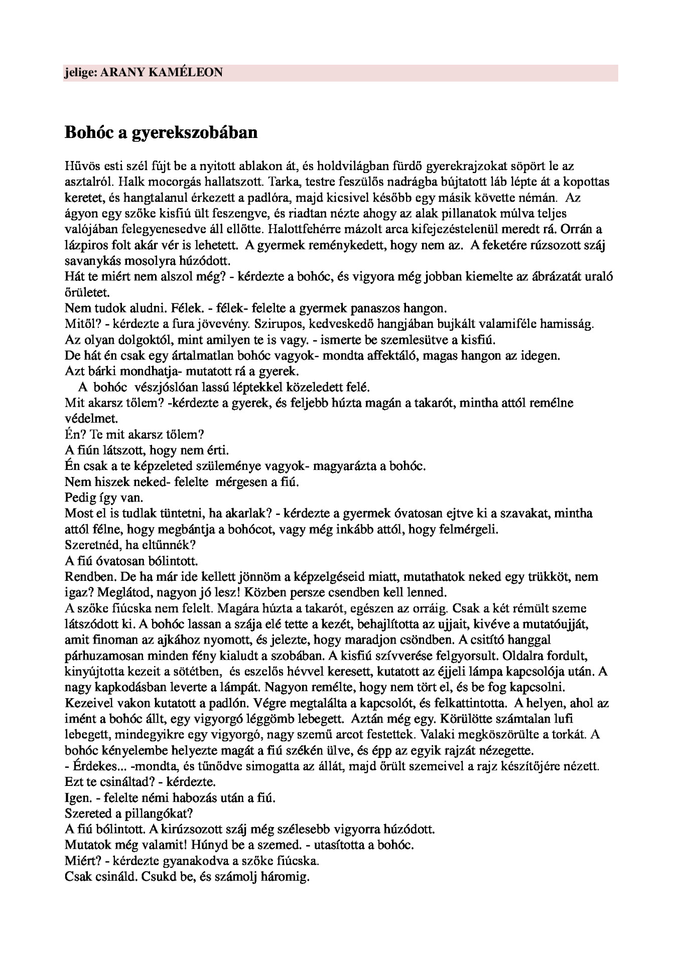 - Nem volt komplett a srác. Láttátok, hogy nézett ki? Szerintem ez még iskolába sem jár. Valami falusi favágó lehet, aki jó murinak tartotta a városi srácokat beijeszteni. Felejtsétek el. Késő van. Bent fekszünk le, összebújunk, mert idekint szeles is lehet az éjszaka.