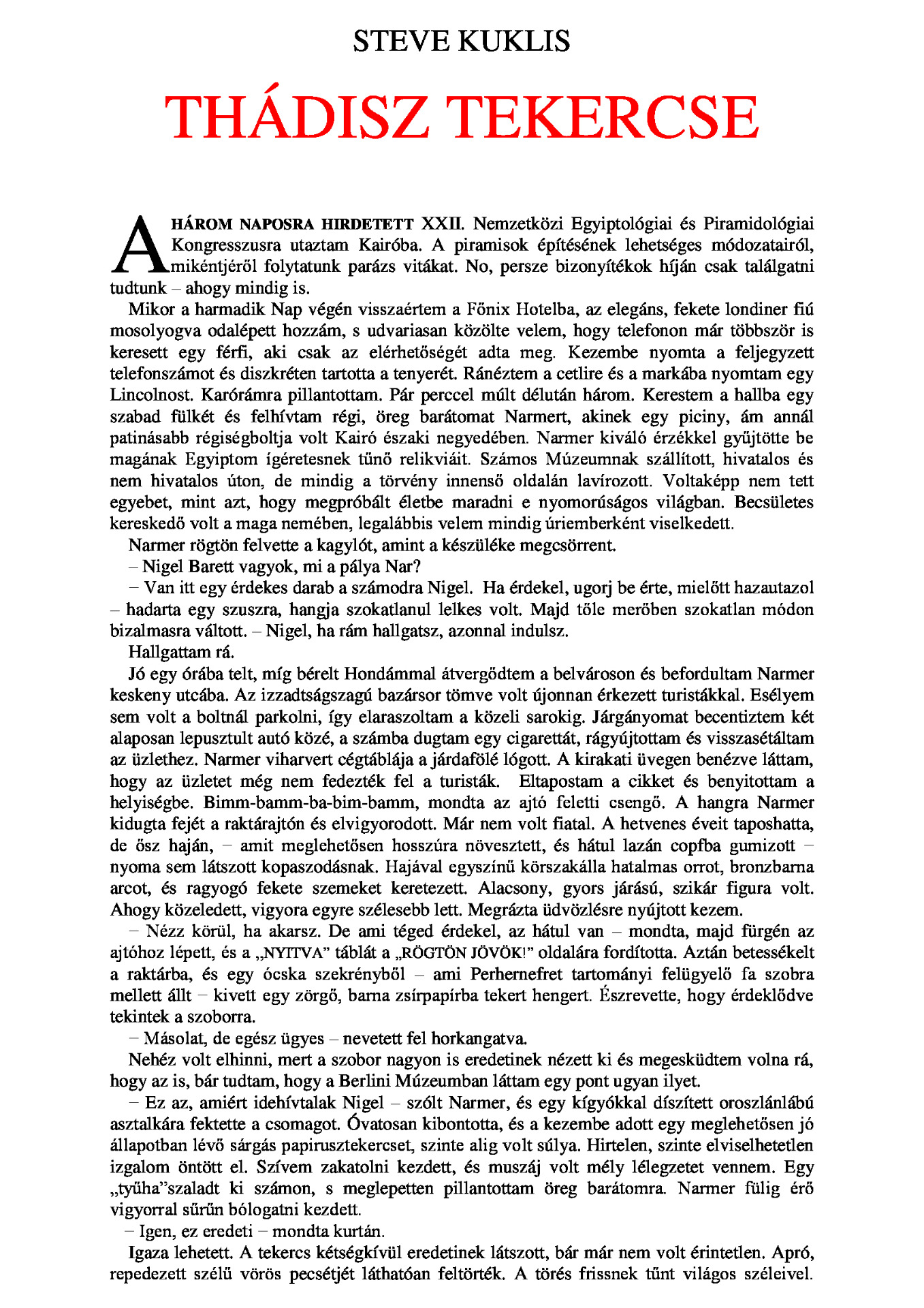 - Miért mennénk? Talán valakinek a magántelkén vagyunk? Egyáltalán ki vagy te? - kérdezte Tibor, és felállt. Ugyan olyan magas volt, mint a jövevény. Tibor erősnek, számomra már túlzottan erősnek számított köztünk, de vonalai a közelébe sem jártak a fejszés fiúnak. Volt valami ősi az érkező megjelenésében. Valami nyers, mégis védelmező. Talán az ókori görögök, vagy rómaiak álmodhatták meg isteneiket ilyen formára. Megleptek saját gondolataim. Lehet, hogy a különös hely és a szobrokkal teli csarnok hoztak ki belőlem spirituális gondolatokat? Világomban nem volt helye ilyesminek. A modern technika csodái vettek körül, néha már gondolkodnom sem kellett, megoldottak helyettem mindent. És itt voltak a barátaim is, akikre minden pillanatban számíthattam. Főleg Gábor. Mindenhez értett, amire szüksége lehetett egy mai tizenhét évesnek.